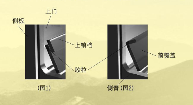根據(jù)需要,我公司在鋼琴上門適當(dāng)?shù)奈恢蒙险秤袃闪7琅鲎材z粒,建議用戶在使用鋼琴時,為避免刮花上門和保證琴譜擺放平穩(wěn),請將前鍵蓋和上鎖檔按圖1所示進行放置,而不要按圖2所示進行。